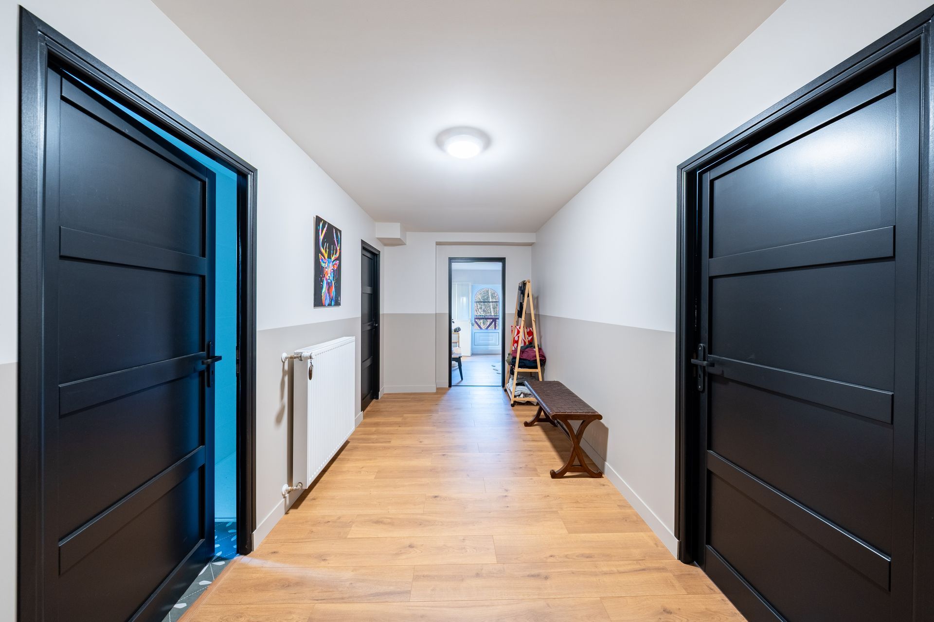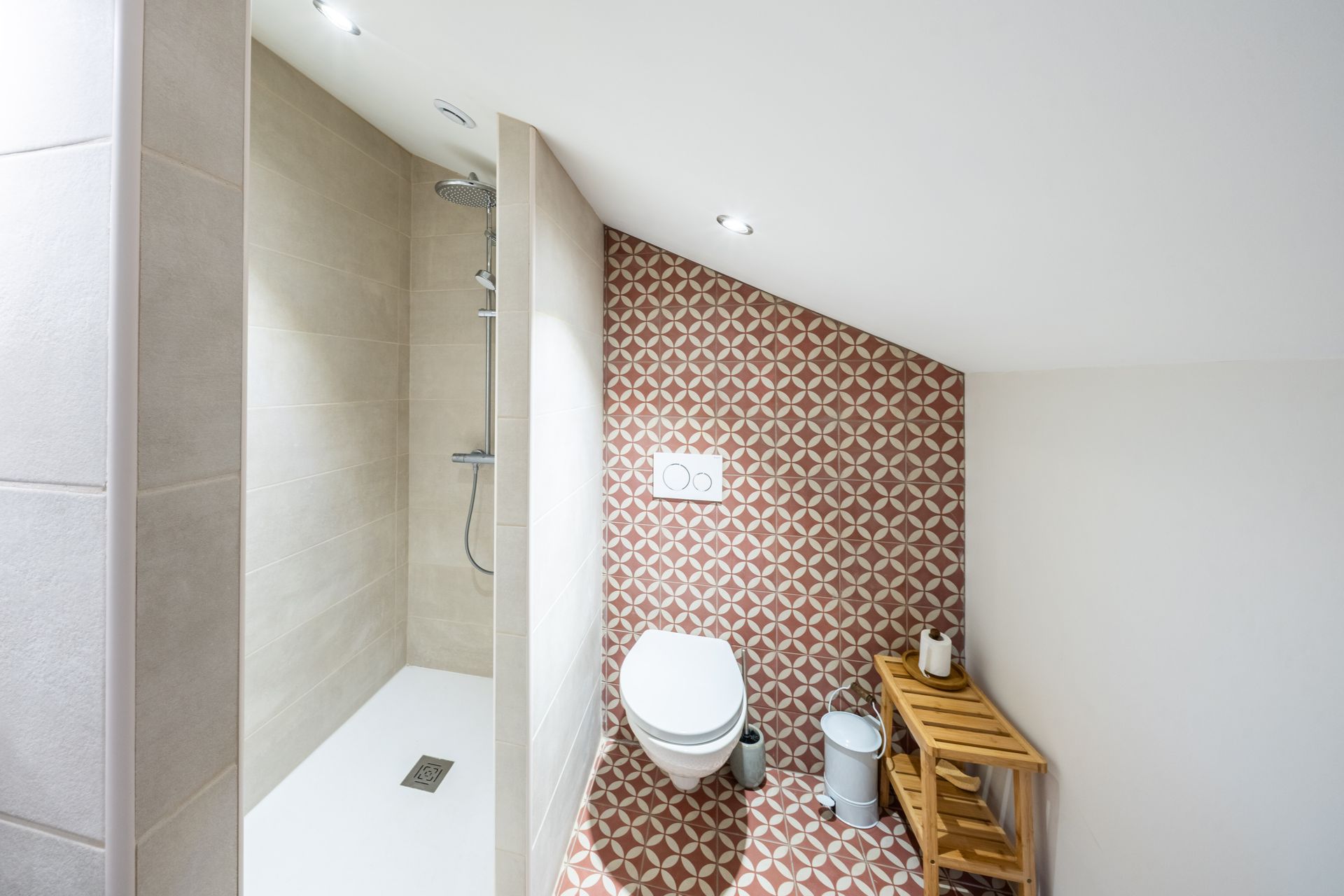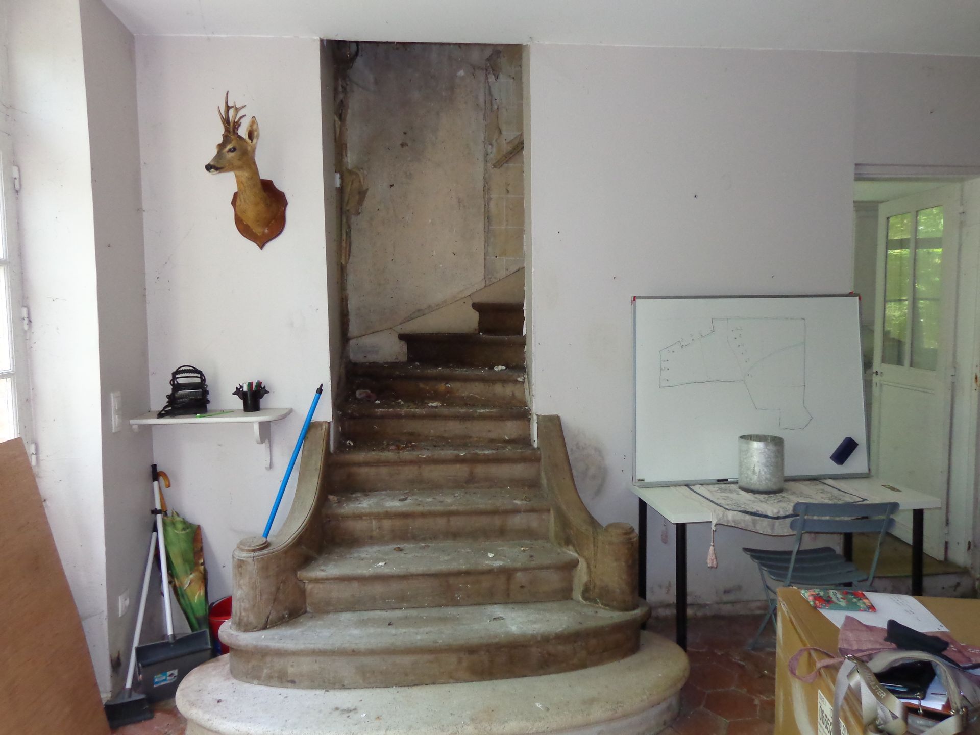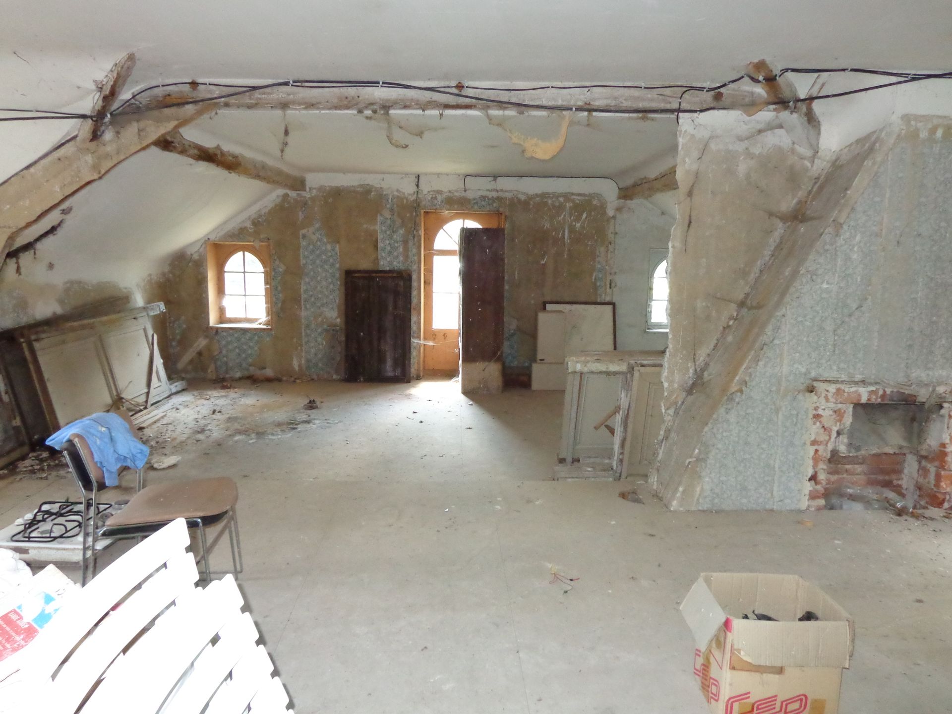 - Création d'un étage avec cloisonnements, arrivées d'eau/évacuations pour accueillir un palier, de nouvelles chambres, des toilettes, deux salles d'eau.