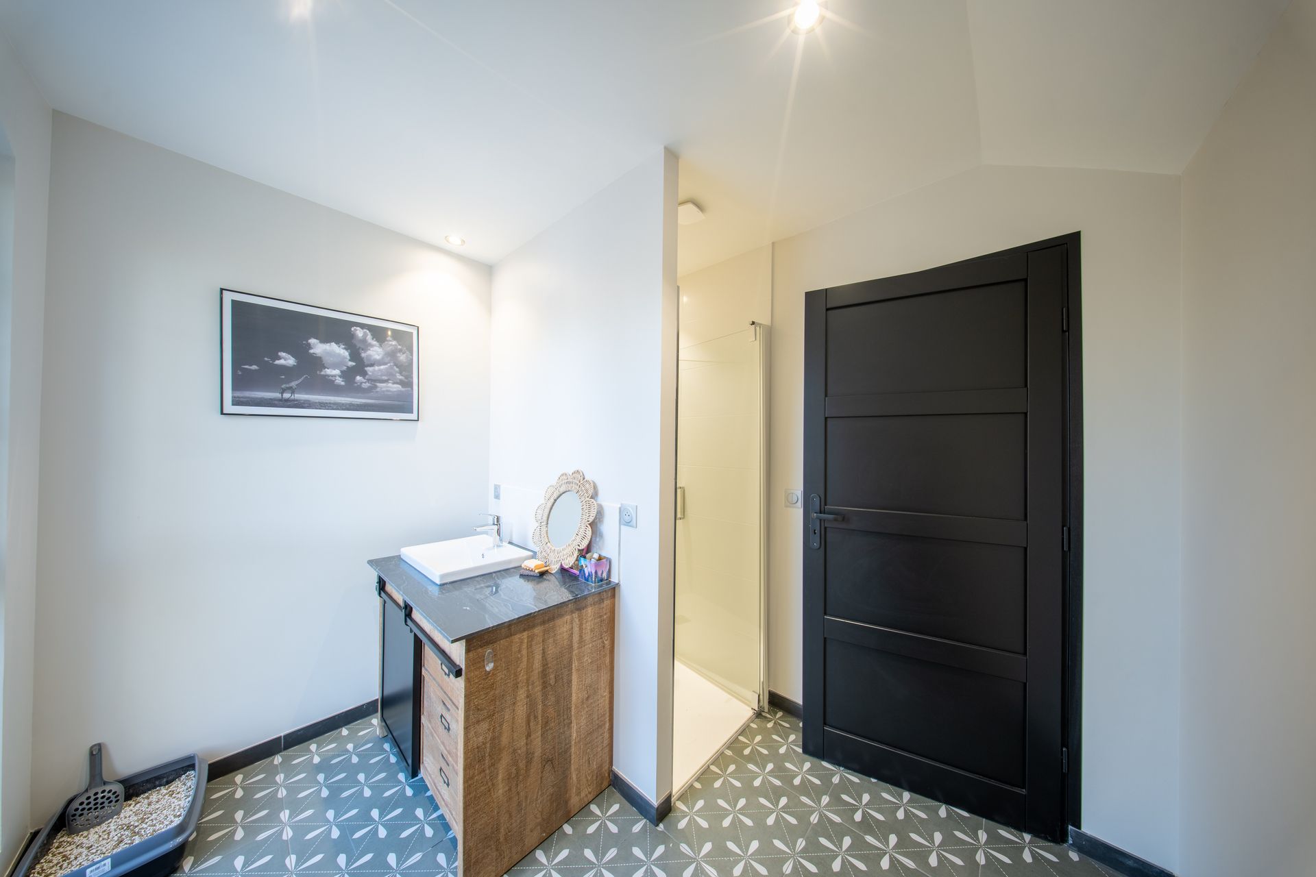 - Création d’une cuisine sur mesure équipée, d'une salle d'eau et de nouveaux toilettes au RDC